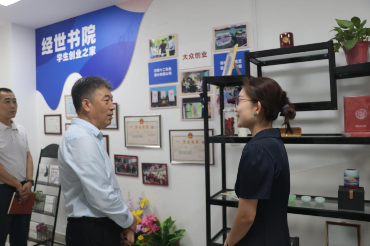 聘任仪式结束后,与会师生共同前往书院“学生创业之家”参观交流。研究生创业者代表郭睿智详细介绍了创业团队的项目方向、发展历程及当前成果。司林胜与学生创业团队亲切交流,细致询问项目运营中的难点与需求。他鼓励同学们扎根专业领域,将课堂所学与实践创新紧密结合,在创业过程中锤炼本领、增长才干。
