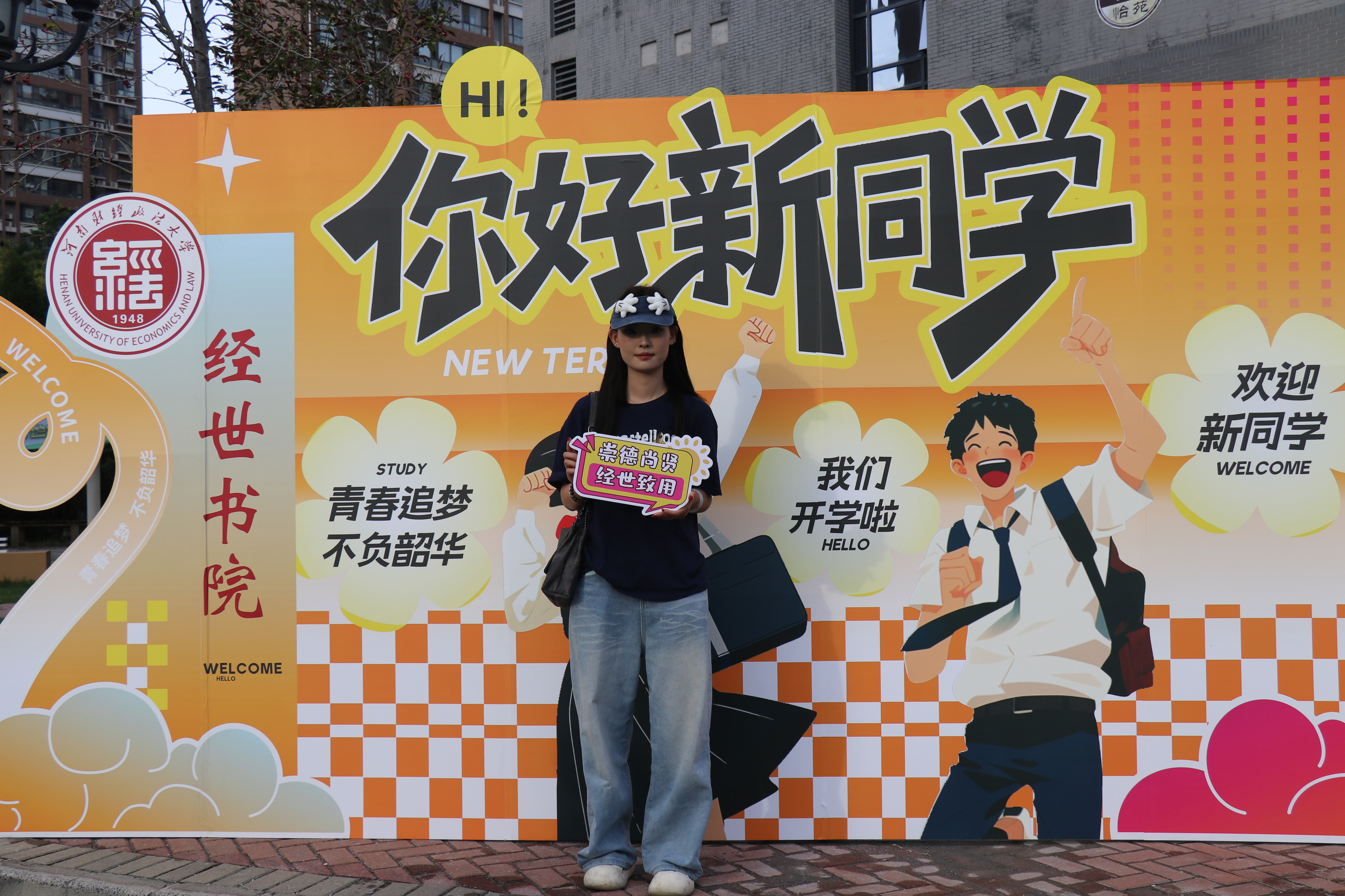 书院还精心设置了趣味打卡点,新生和家人在书院标识前留下了与财大的第一张合影。